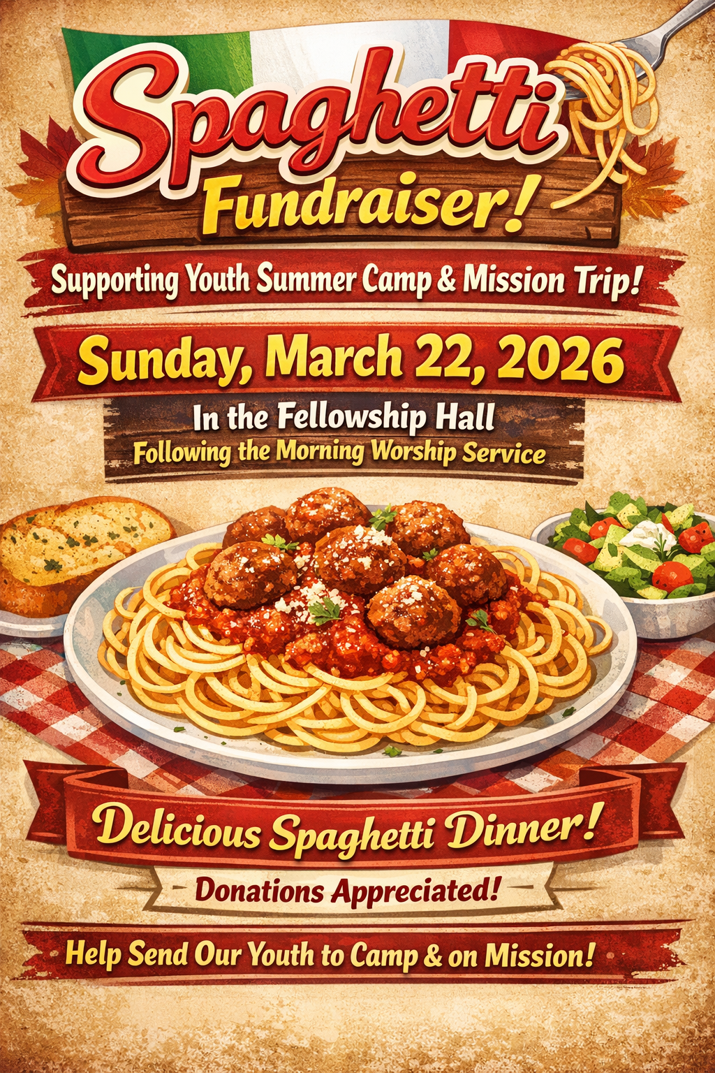 Join us for a Spaghetti Lunch Fundraiser on Sunday, March 22, in the Fellowship Hall following the worship service! All proceeds will help offset the cost for our students attending SummerSalt Camp and the World Changers Mission Trip this summer. Enjoy a great meal, support our students, and help send them out to grow in their faith and serve others.